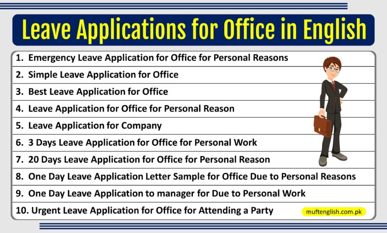 In this blog, we will provide you with 10+ Best Leave Applications for Office in English (2024) so that you can easily get leave when needed. We are providing you with the best samples for leave applications for the office and you can easily understand how to write a leave application for the office in English. You can use these applications for sick leave, emergency leave, personal reasons, wedding leave and more.