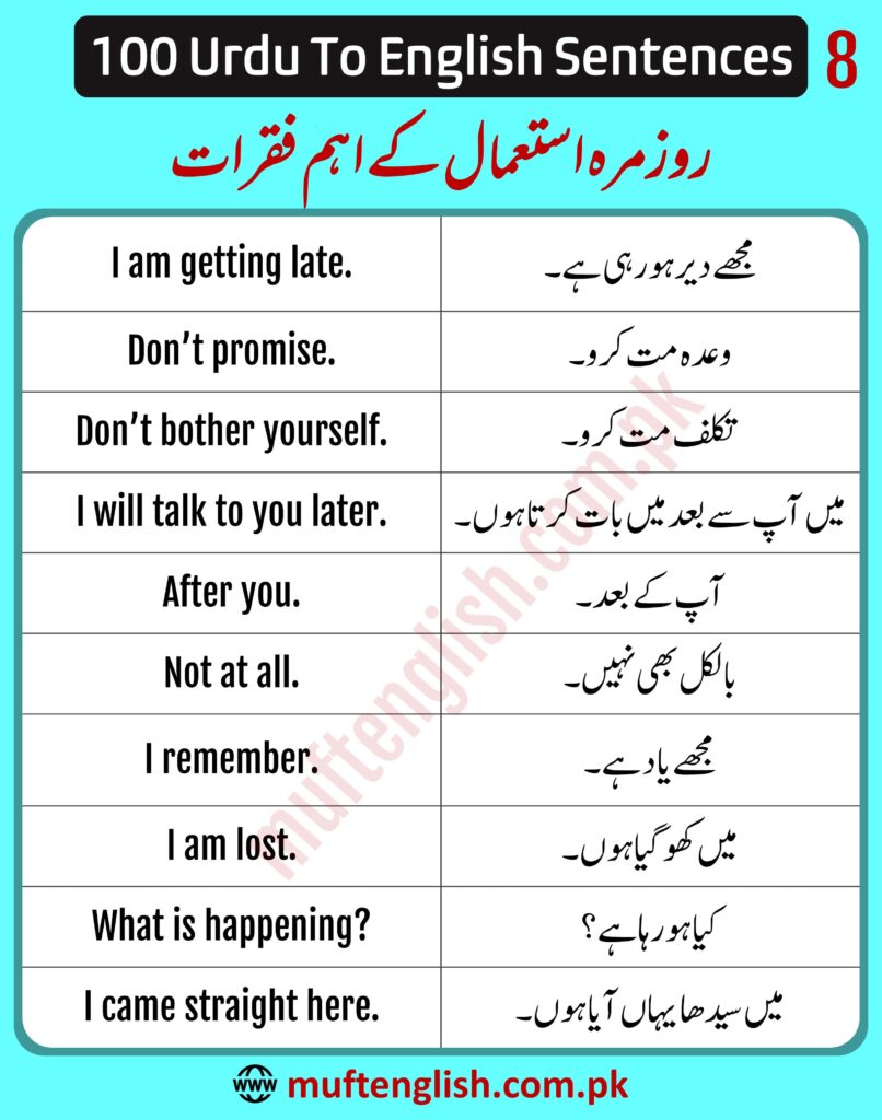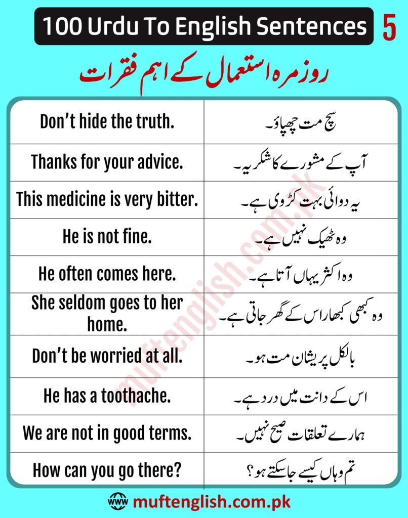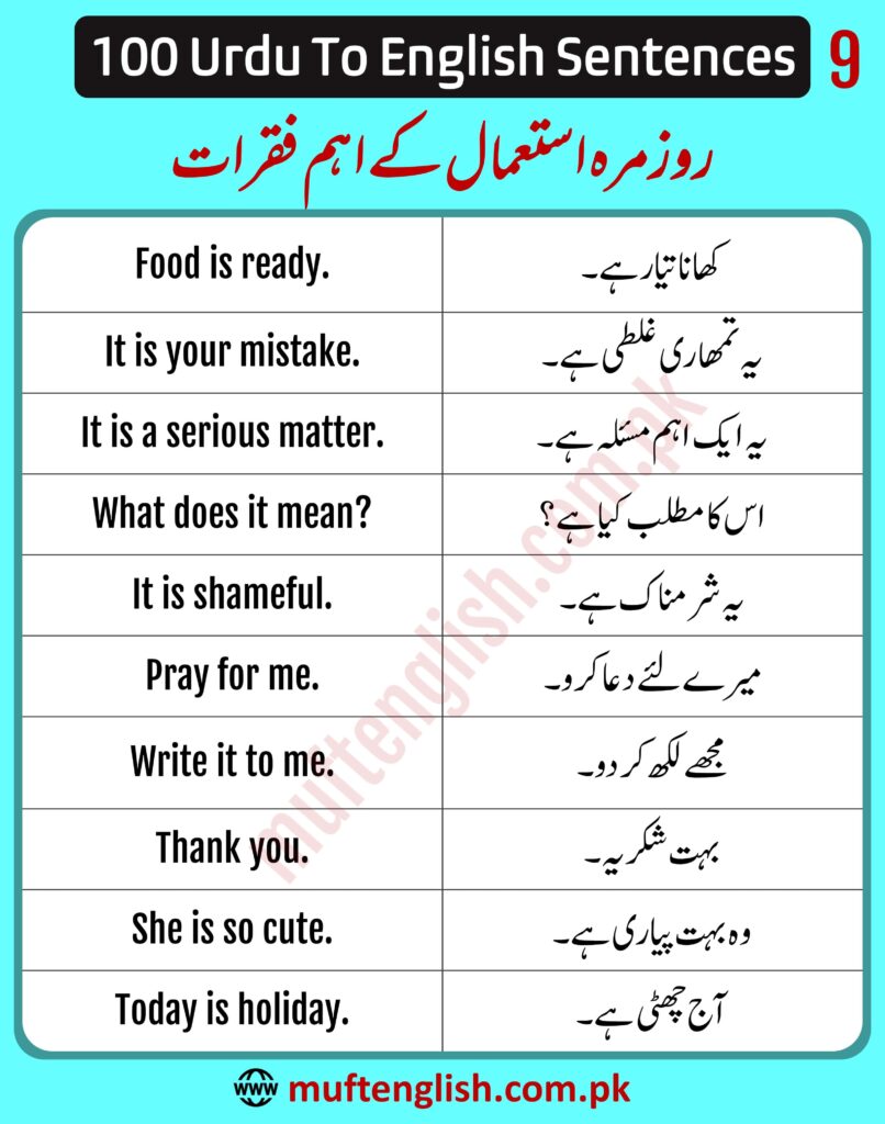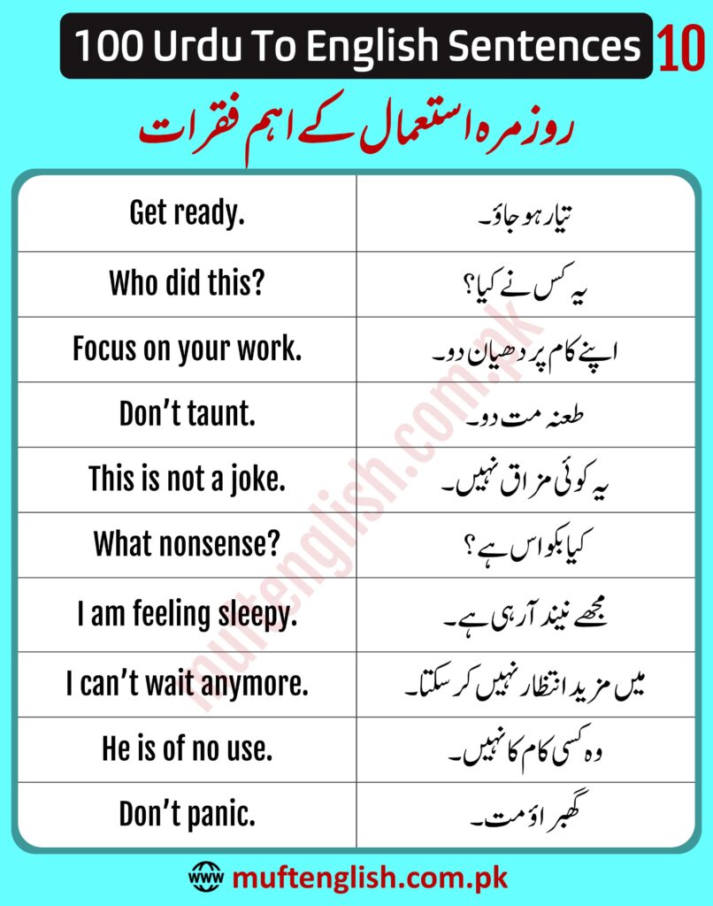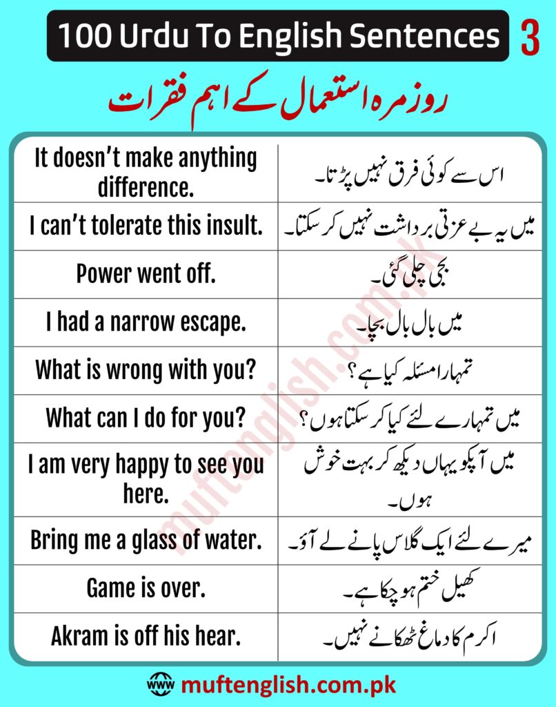 These sentences are translated into Urdu so that you can easily understand them and memorize them. You should practice these sentences daily.