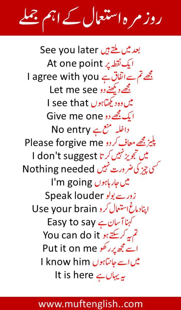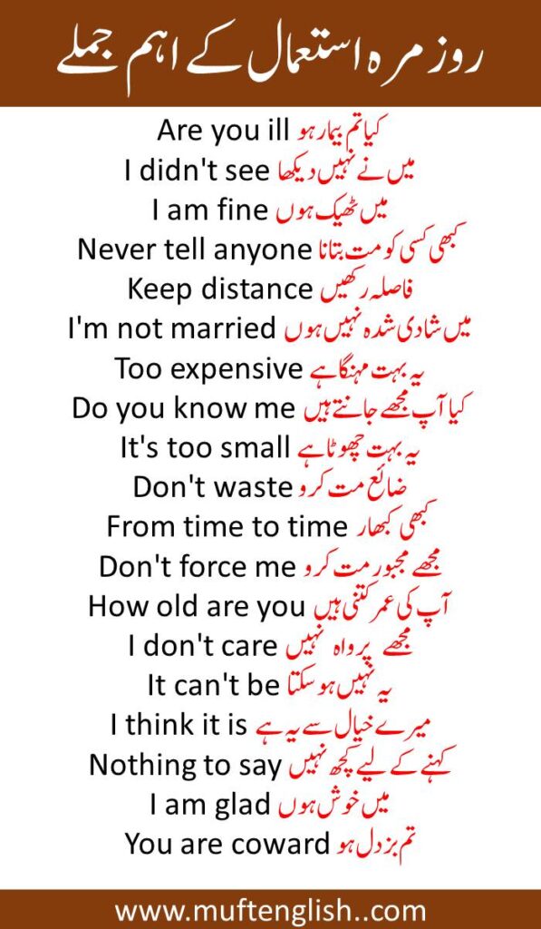 Below list has some daily used English sentences with their Urdu translation learning these sentences will improve your daily English speaking skills.