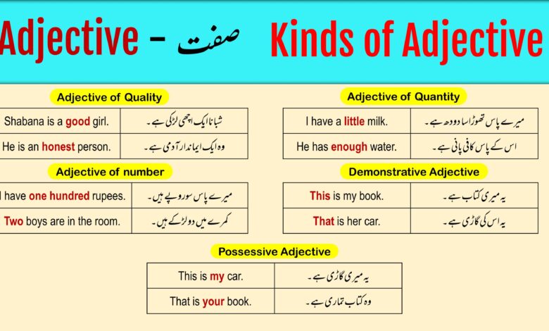 Adjective in English and Urdu – Meaning, Definition and Examples