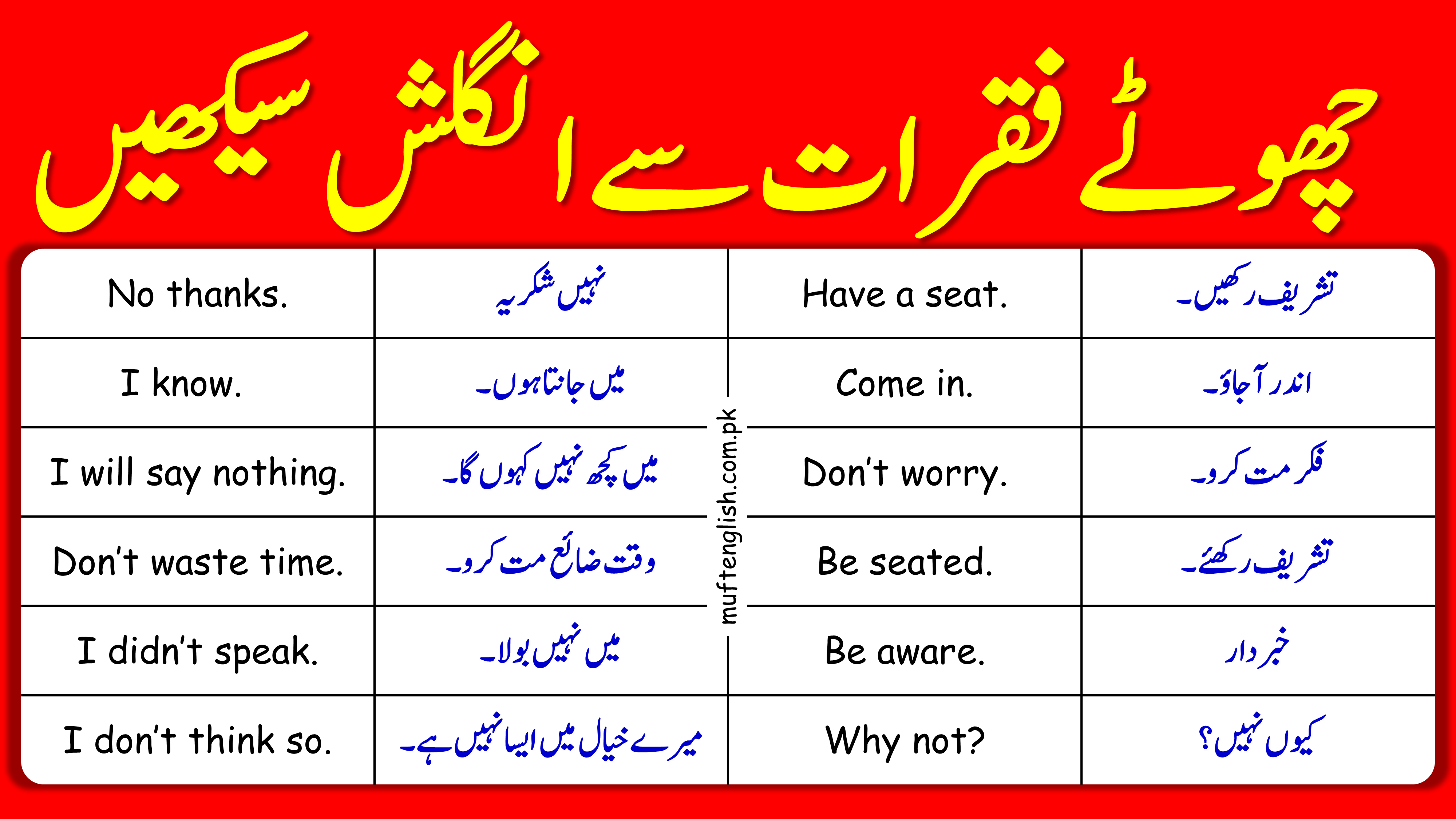 33 English Sentences for Daily Life Use with Urdu Meaning