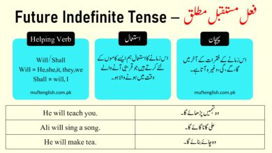 Future Indefinite Tense with Examples in Urdu This tense is used to talk about future predictions and pre-planned actions that…
