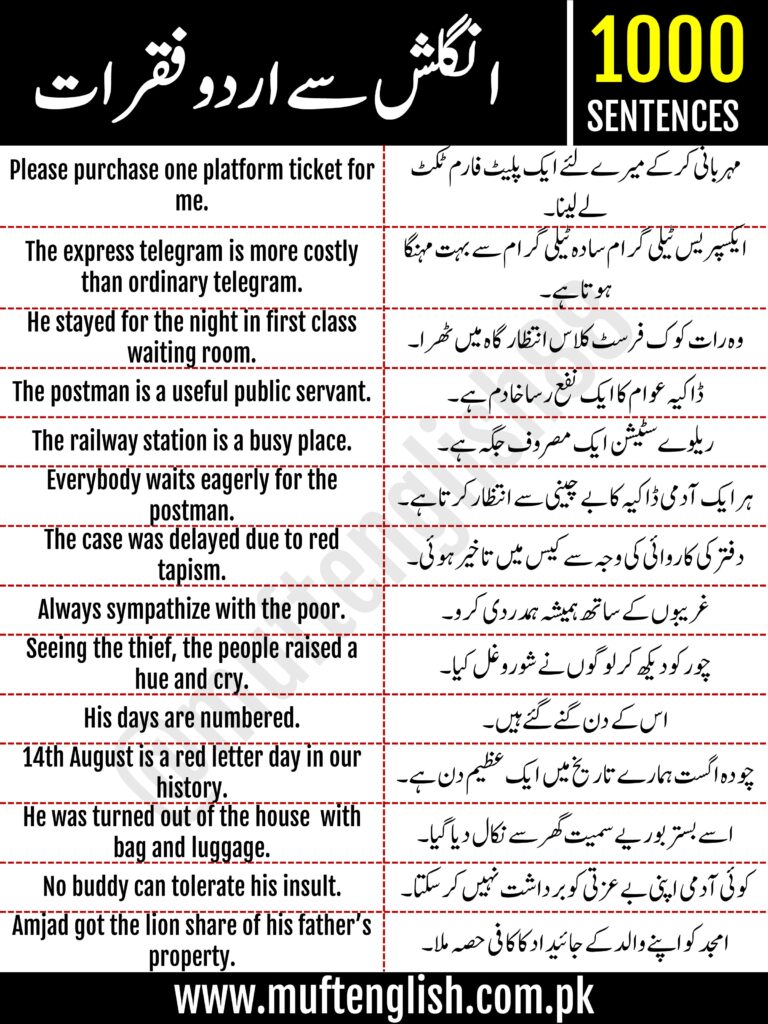 We have provided you with hundreds of amazing English sentences with Urdu meanings and you can get the PDF book of this lesson below to start learning them.