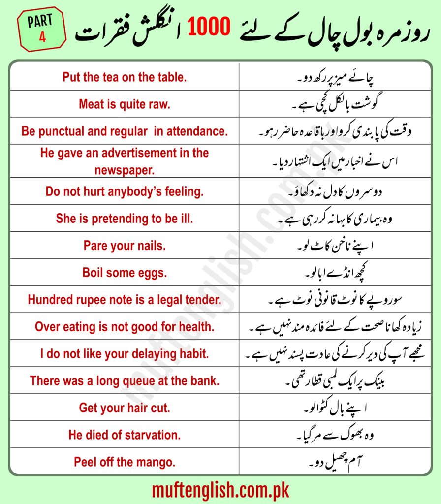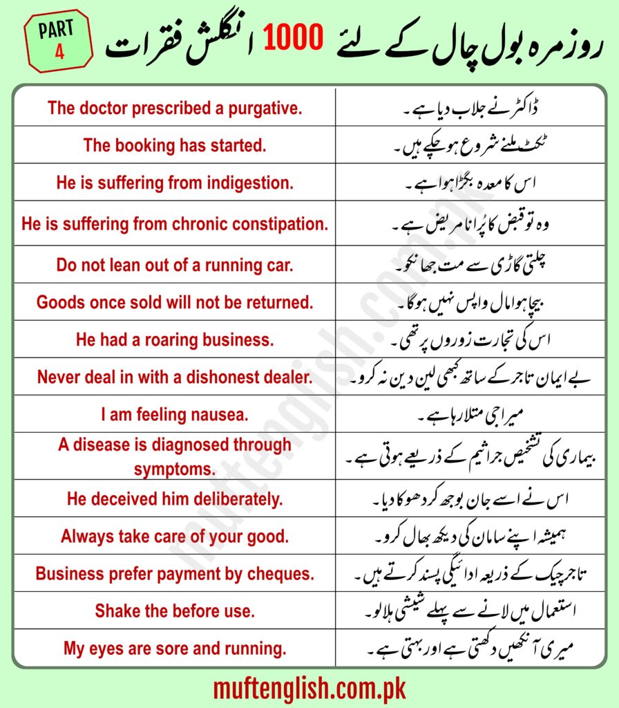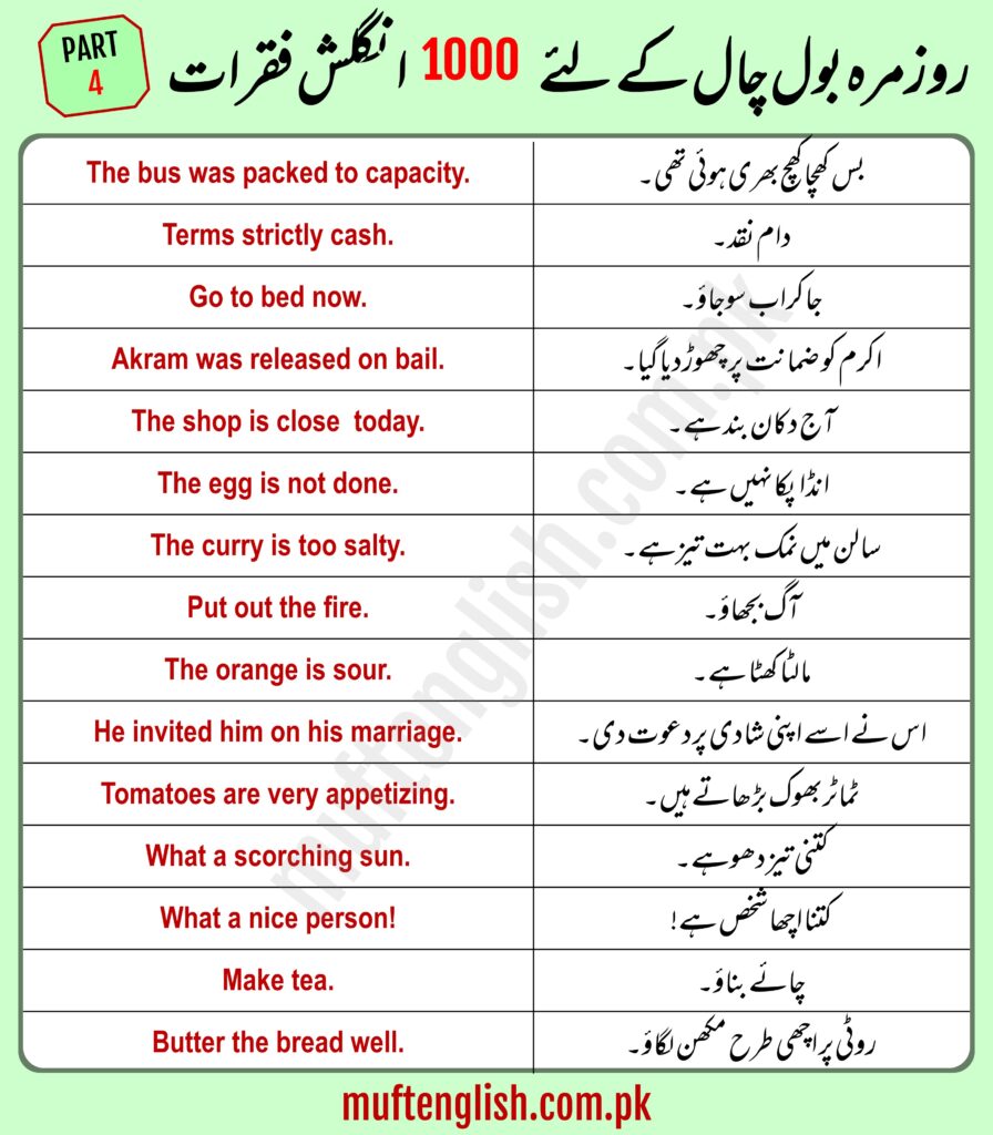 In this blog, we are going through the daily use of English sentences with Urdu translation and Roman meanings in part 4. We have already covered part 3 part 2 and part 1 of English to Urdu sentences in the previous articles. English is an international language, and most people can easily understand English globally. People love to speak English whether it’s a greeting, wedding, birthday celebration or business and casual meeting. In this blog, we will provide you with the most useful English to Urdu sentences so that you don’t get stuck while conversing in English. You can easily use these sentences in your daily life conversations and impress others with your English speaking skills. Read the article carefully and keep scrolling to learn new sentences.