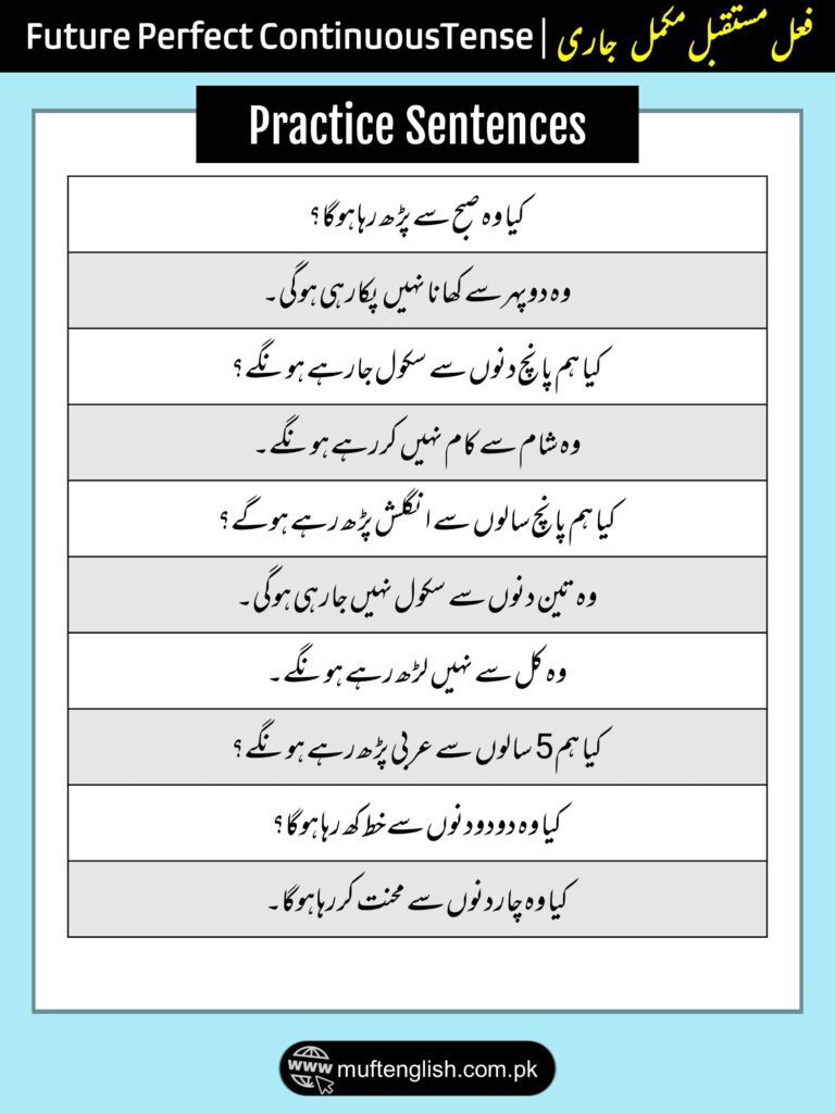 Future Perfect Continuous Tense in Urdu