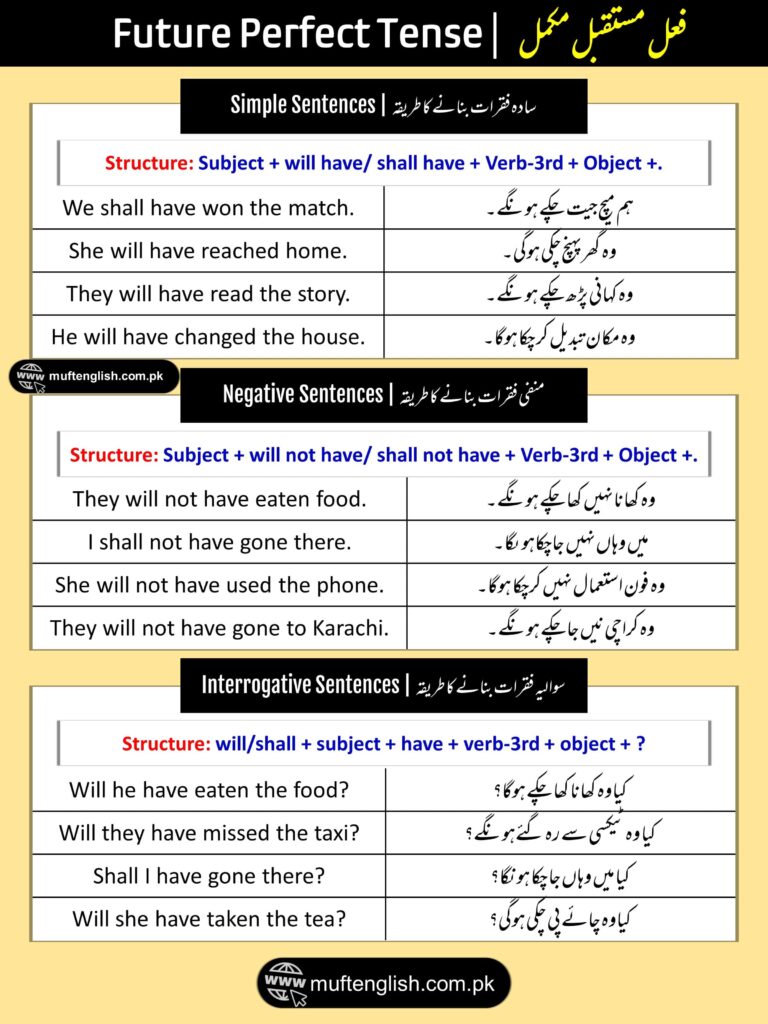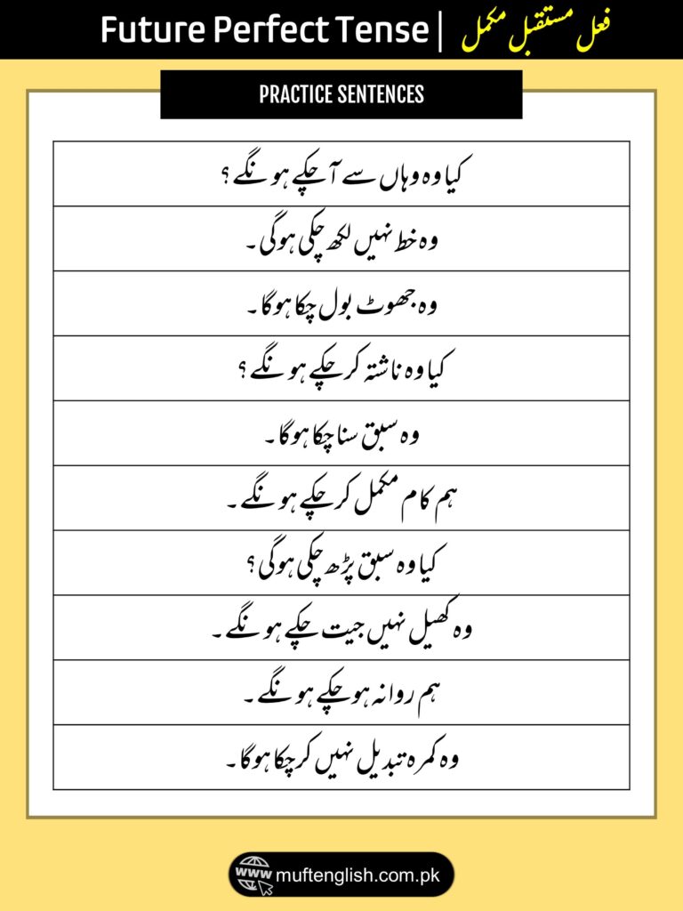 Future Perfect Tense in Urdu and English with Examples