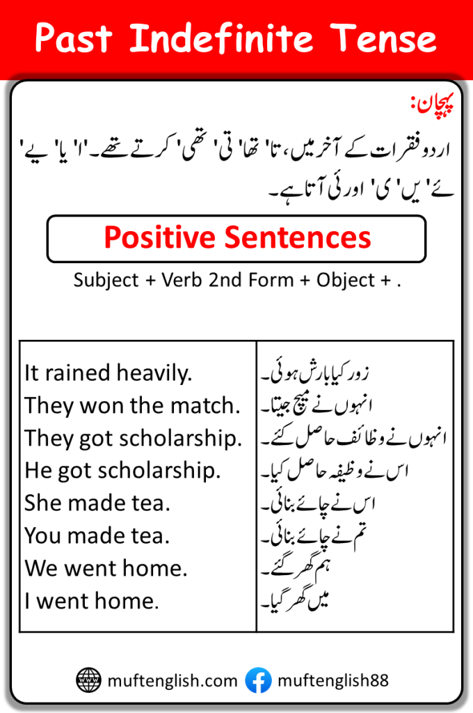 ٰPast Indefinite Tense Positive Sentences with Examples