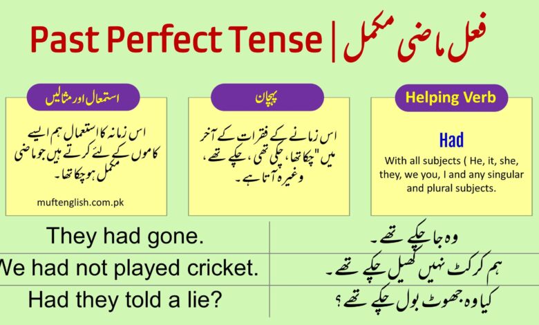 Past Perfect Tense in Urdu and English with Examples