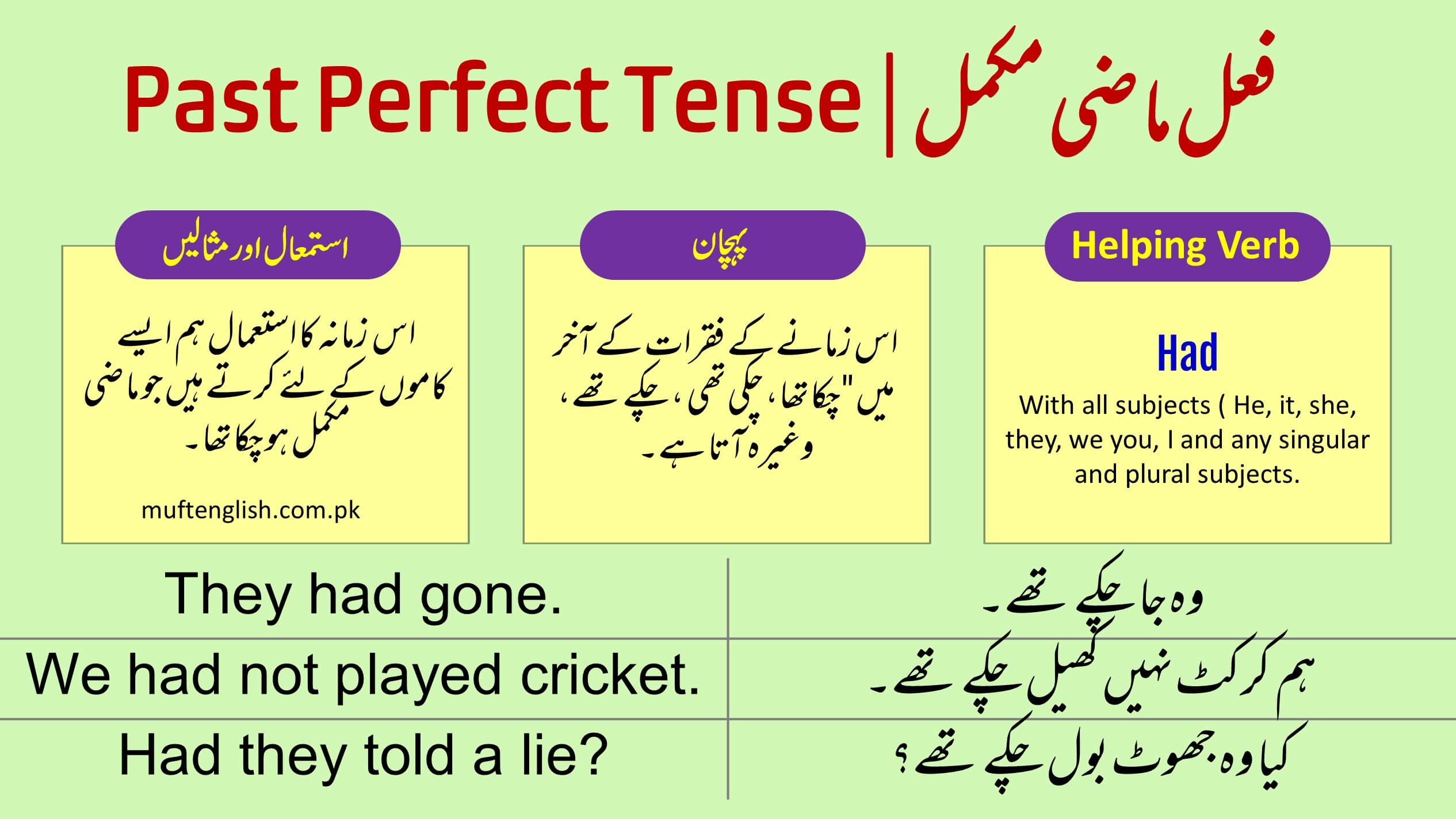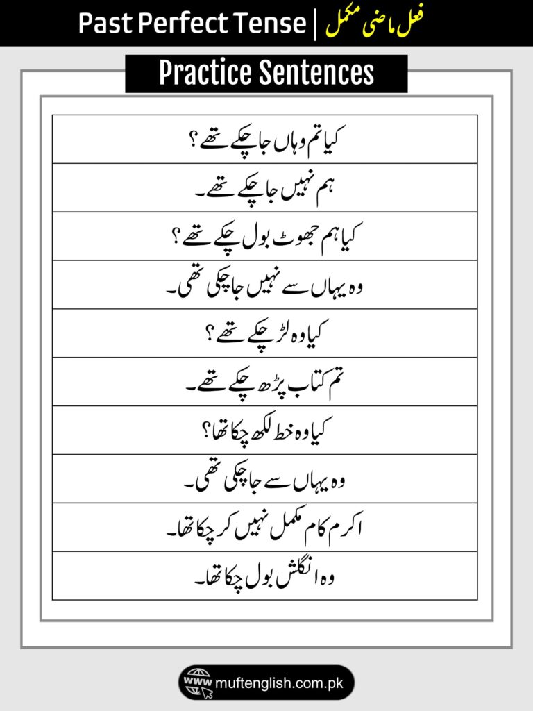 In this blog, you will learn about the past perfect tense in Urdu with many examples. Here you will understand how to use this tense grammatically, you will know this tense with proper structures, and at the end of this blog, you can get the pdf lesson.