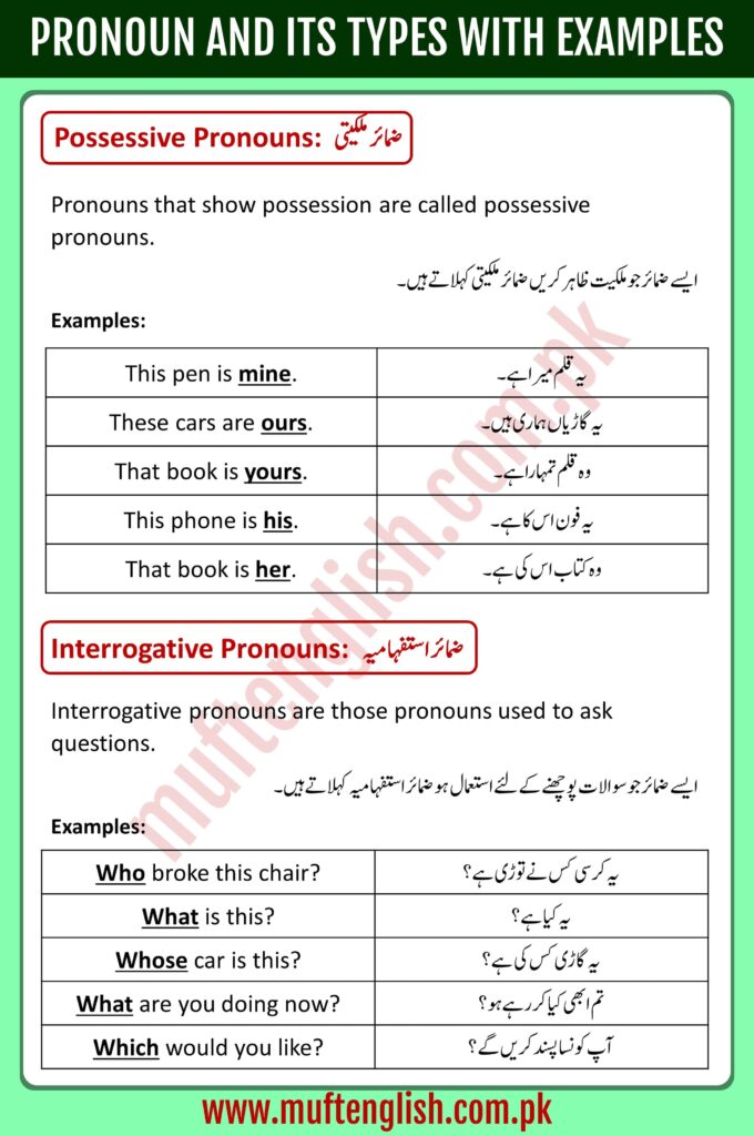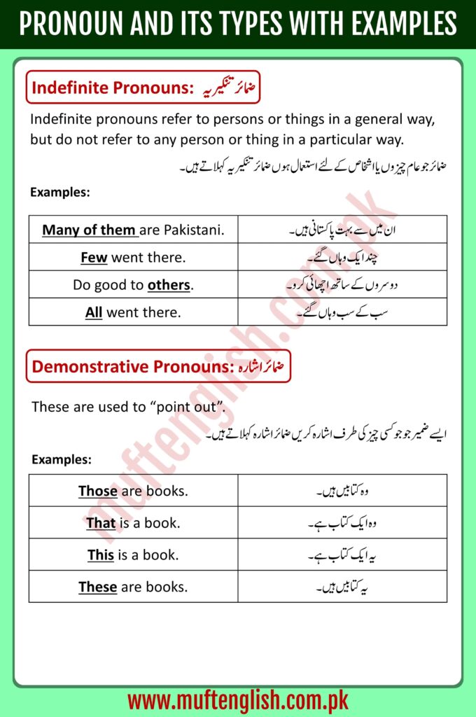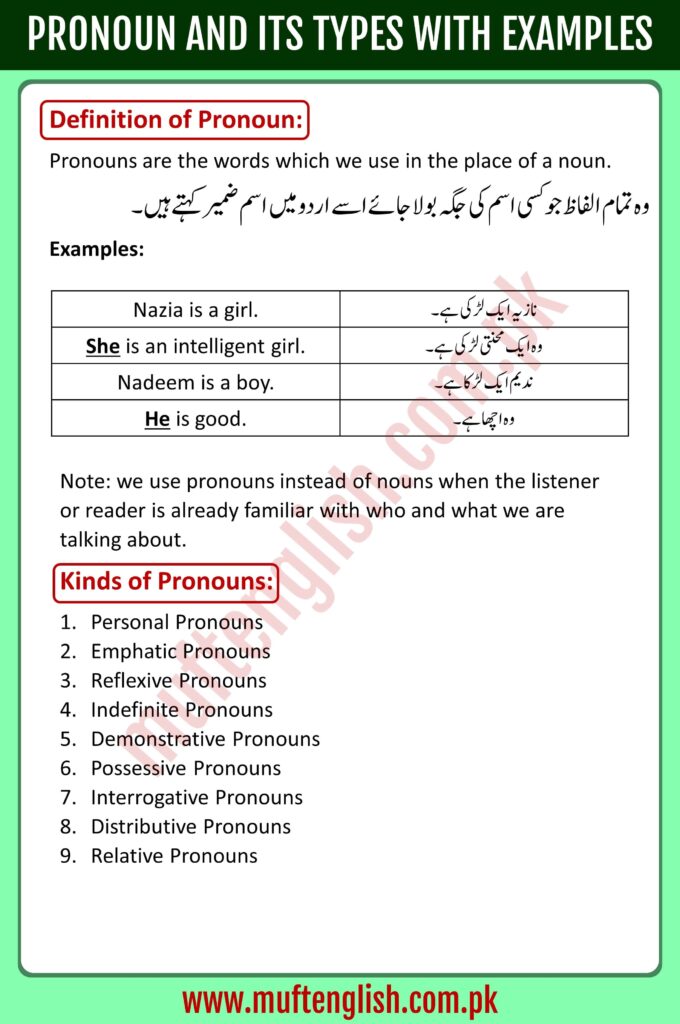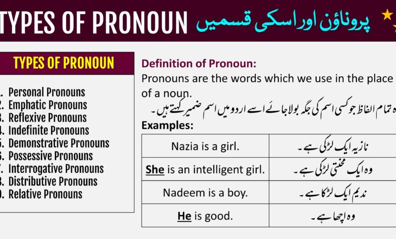 Pronoun Definition and Their Types with Examples in Urdu and English