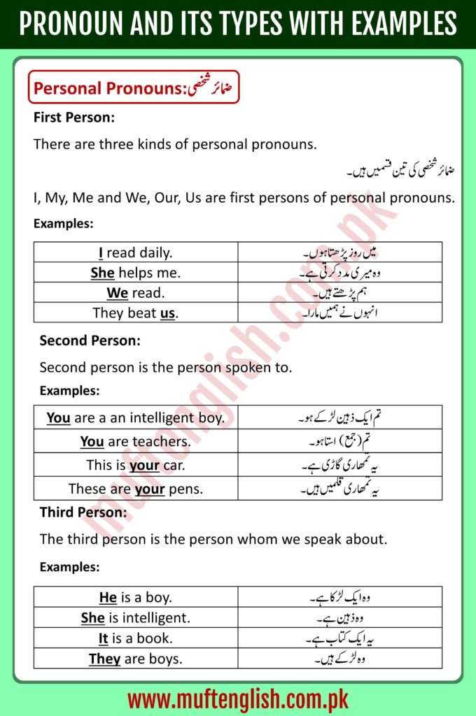 In this amazing blog, we are going to teach you all the types of pronouns with their examples and Urdu meanings. Below we have mentioned the nine types of pronouns with definitions and examples. Don’t forget to learn the chart of personal pronouns below.